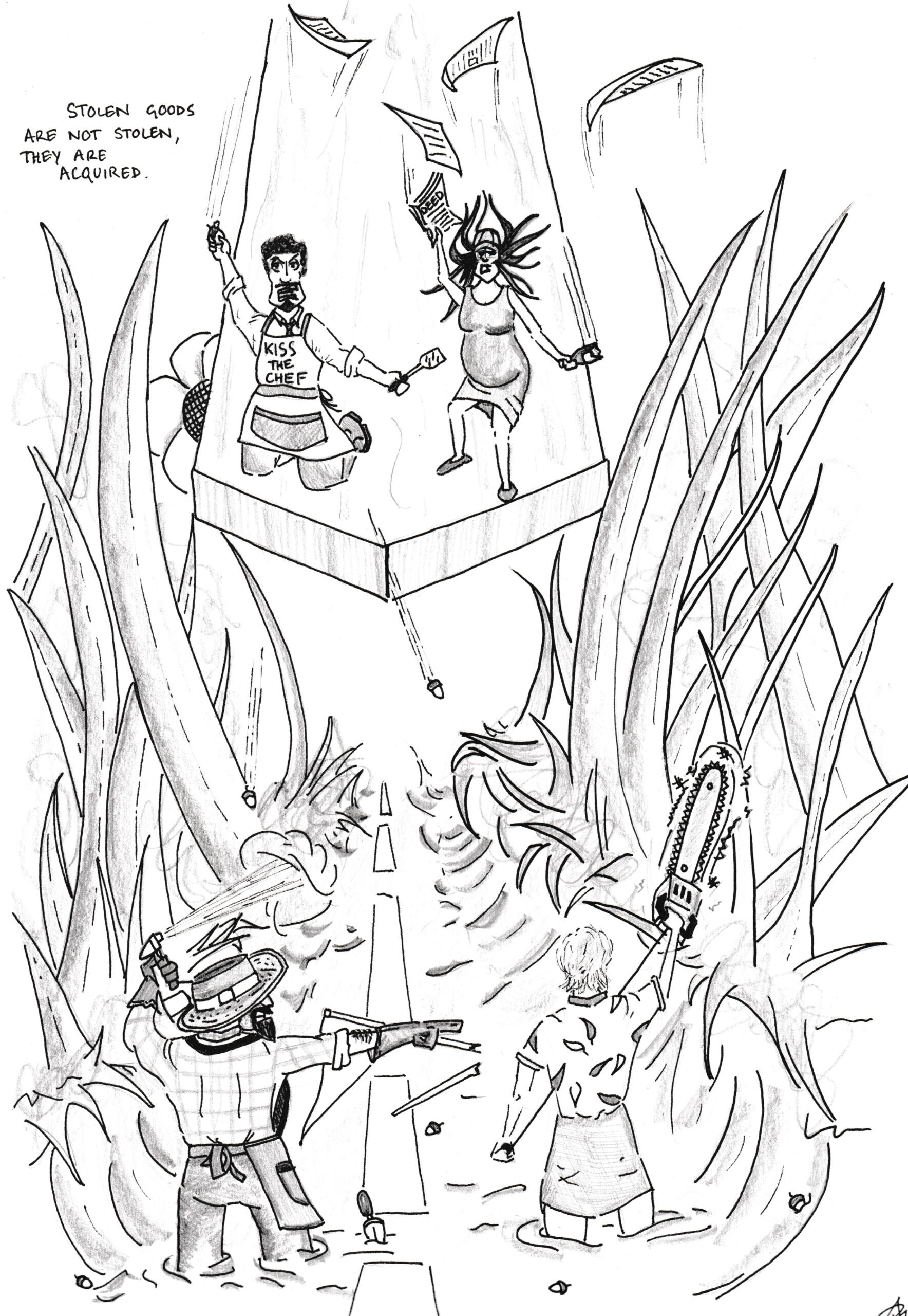 Amidst the humor, I was keen to play upon the power dynamics and racial inequalities within Karen's play. I found this played into and against the characters views of themselves and each other. The garden is an all consuming presence in the play, hence my interest in depicting these characters in microscopic proportions...